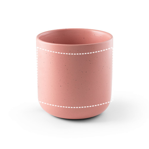 Kerámia bögre matt felülettel és pettyes külsővel. Űrtartalom 370 mL. Kraftpapír díszdobozban szállítjuk. A bögre mosogatógépben mosható és az EN12875-2 szabvány szerint legalább 125 mosási ciklusnak ellenáll (beleértve a nyomtatást is)