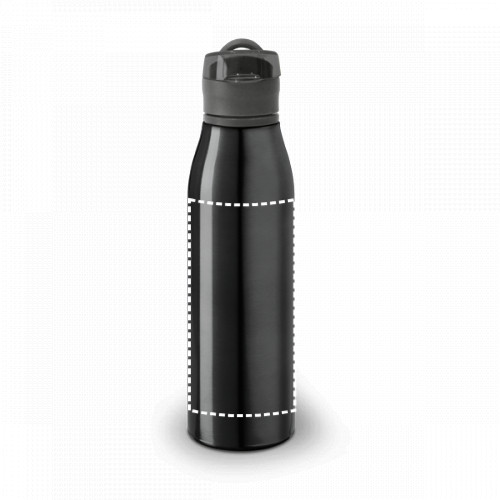 Sport palack alumíniumból, kupakkal és fogantyúval a könnyű szállítás érdekében. Kapacitása 650 mL