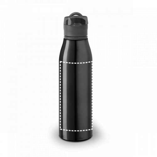 Sport palack alumíniumból, kupakkal és fogantyúval a könnyű szállítás érdekében. Kapacitása 650 mL