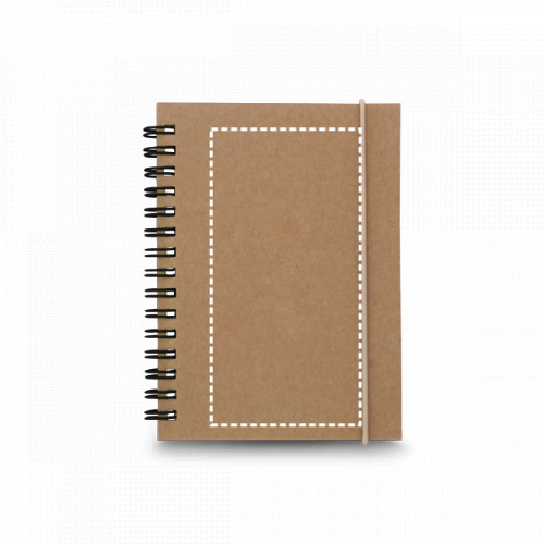 Spirál zseb-jegyzetfüzet 120 vonalas, merev karton borítóval és gumiszalaggal. 100 x 140 mm