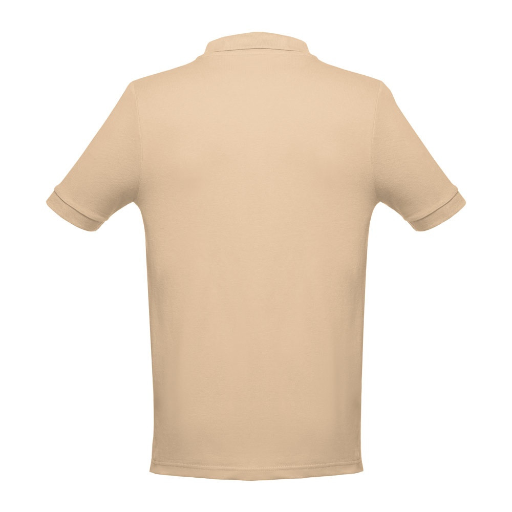 100% kártolt, puha tapintású pamut piqué hálós férfi póló (195 g/m²). (A 183-as szín esetében az anyagösszetétel eltérő: 85% pamut/15% viszkóz.) Normál szabású, rövid ujjú póló, bordázott ujj szegélyekkel és gallérral. Piqué szallaggal megerősített gallér. Gombolópánt elől a nyakrésznél, három, a poló anyagával megeggyező színű gombbal (extra gombbal a belső varraton). Szabott-varrott, oldalt sliccel az alján. Méretek: S, M, L, XL, XXL