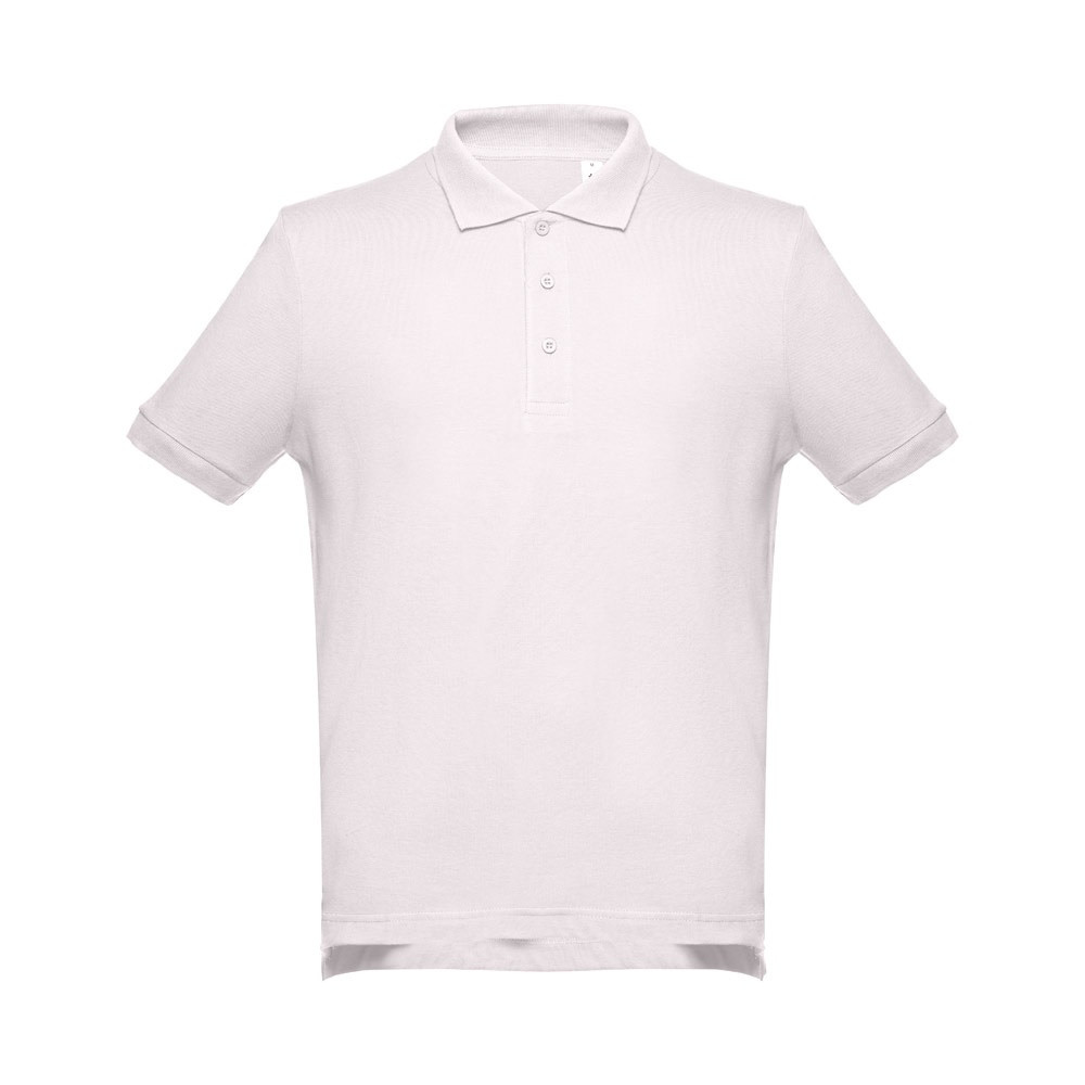 100% kártolt, puha tapintású pamut piqué hálós férfi póló (195 g/m²). (A 183-as szín esetében az anyagösszetétel eltérő: 85% pamut/15% viszkóz.) Normál szabású, rövid ujjú póló, bordázott ujj szegélyekkel és gallérral. Piqué szallaggal megerősített gallér. Gombolópánt elől a nyakrésznél, három, a poló anyagával megeggyező színű gombbal (extra gombbal a belső varraton). Szabott-varrott, oldalt sliccel az alján. Méretek: S, M, L, XL, XXL