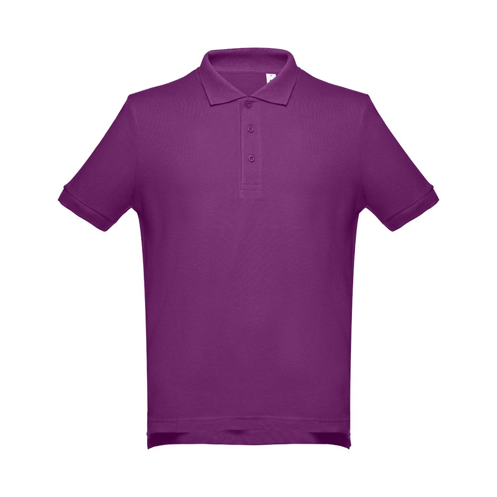 100% kártolt, puha tapintású pamut piqué hálós férfi póló (195 g/m²). (A 183-as szín esetében az anyagösszetétel eltérő: 85% pamut/15% viszkóz.) Normál szabású, rövid ujjú póló, bordázott ujj szegélyekkel és gallérral. Piqué szallaggal megerősített gallér. Gombolópánt elől a nyakrésznél, három, a poló anyagával megeggyező színű gombbal (extra gombbal a belső varraton). Szabott-varrott, oldalt sliccel az alján. Méretek: S, M, L, XL, XXL