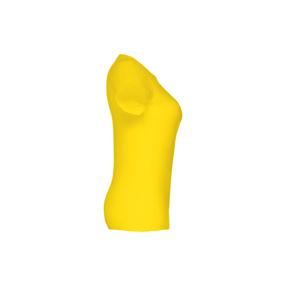 100% pamut jersey, karcsúsított női póló (190 g/m²), kártolt, puha tapintású fonalból szőve. (A 183-as szín esetében az anyagösszetétel eltérő: 90% pamut/10% viszkóz.) Vékony jersey nyak, szatén megerősítéssel. Dupla öltés az ujjakon és az alján. Szabott-varrott. Méretek: S, M, L, XL, XXL