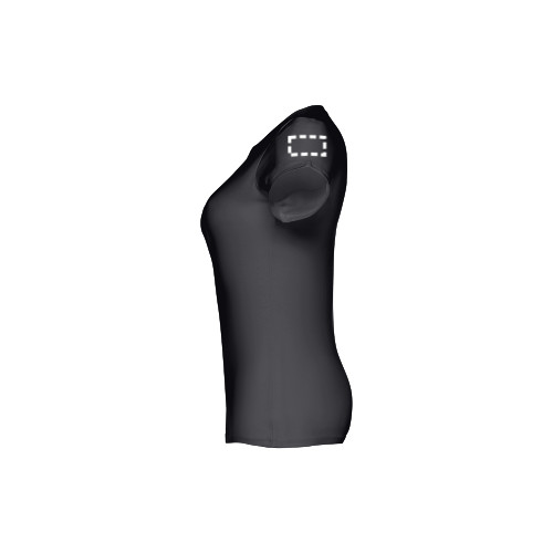 100% pamut jersey, karcsúsított női póló (190 g/m²), kártolt, puha tapintású fonalból szőve. (A 183-as szín esetében az anyagösszetétel eltérő: 90% pamut/10% viszkóz.) Vékony jersey nyak, szatén megerősítéssel. Dupla öltés az ujjakon és az alján. Szabott-varrott. Méretek: S, M, L, XL, XXL