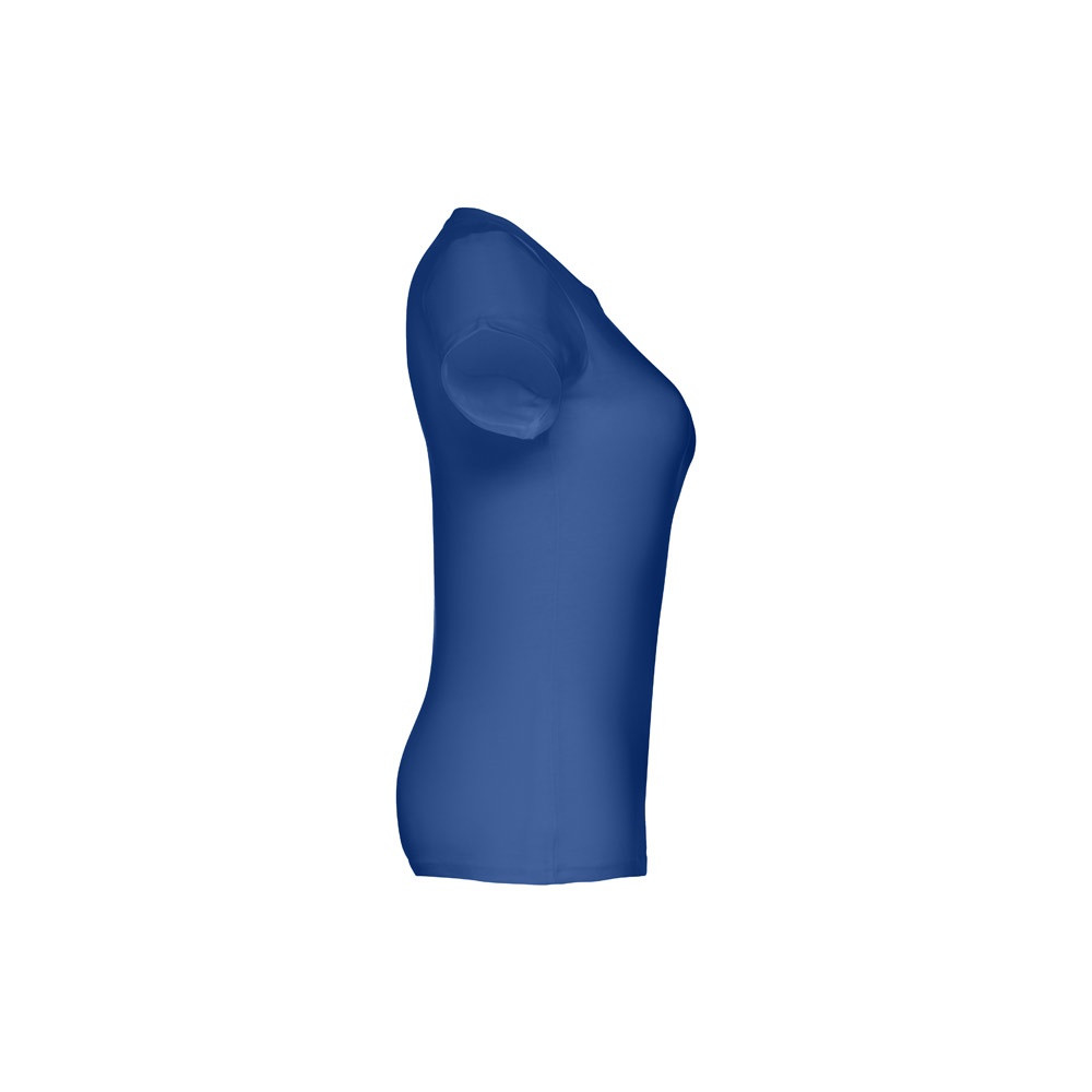 100% pamut jersey, karcsúsított női póló (190 g/m²), kártolt, puha tapintású fonalból szőve. (A 183-as szín esetében az anyagösszetétel eltérő: 90% pamut/10% viszkóz.) Vékony jersey nyak, szatén megerősítéssel. Dupla öltés az ujjakon és az alján. Szabott-varrott