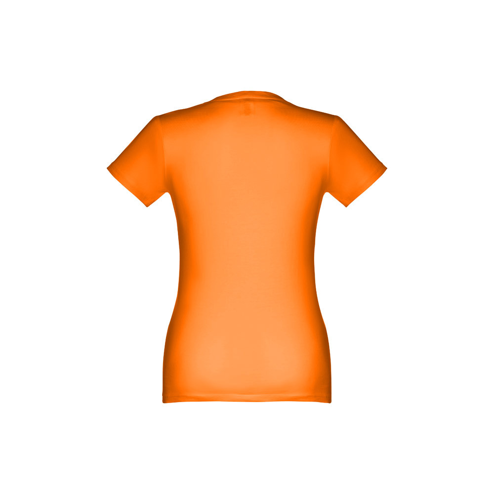 100% pamut jersey, karcsúsított női póló (190 g/m²), kártolt, puha tapintású fonalból szőve. (A 183-as szín esetében az anyagösszetétel eltérő: 90% pamut/10% viszkóz.) Vékony jersey nyak, szatén megerősítéssel. Dupla öltés az ujjakon és az alján. Szabott-varrott. Méretek: S, M, L, XL, XXL