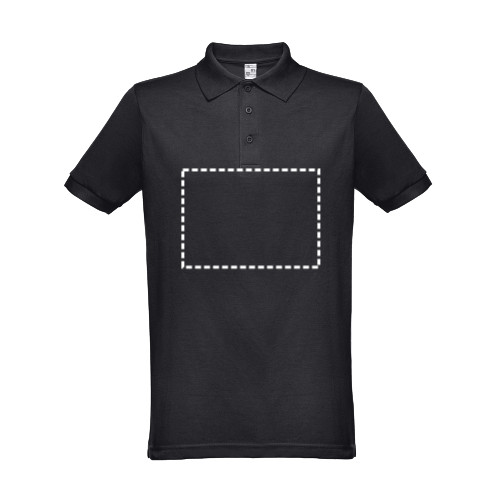 Rövid ujjú, galléros, piqué hálós férfi póló, 65% poliészterből és 35% pamutból (200 g/m²). Normál szabású póló bordázott gallérral és ujj szegélyekkel, kötött piqué szalaggal megerősített gallérral. Gombolópánt a nyakon 3 db, a póló színével megyeggyező színű gombbal. Pótgomb a belső varraton. Szabott-varrott. A 183-as szín esetében az anyagösszetétel eltérő: 85% pamut/15% viszkóz. Méret: 3XL