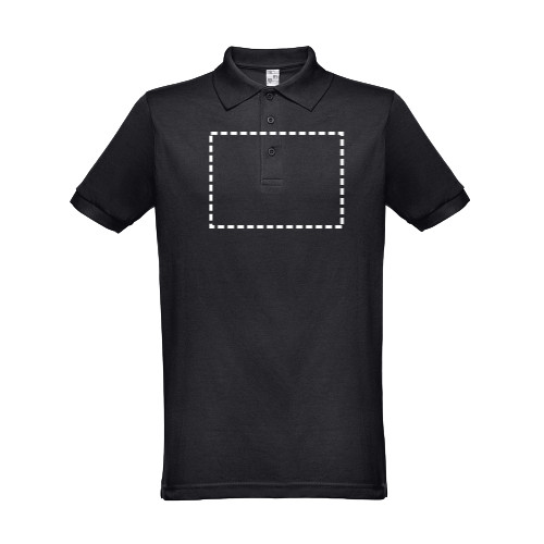 Rövid ujjú, galléros, piqué hálós férfi póló, 65% poliészterből és 35% pamutból (200 g/m²). Normál szabású póló bordázott gallérral és ujj szegélyekkel, kötött piqué szalaggal megerősített gallérral. Gombolópánt a nyakon 3 db, a póló színével megyeggyező színű gombbal. Pótgomb a belső varraton. Szabott-varrott. A 183-as szín esetében az anyagösszetétel eltérő: 85% pamut/15% viszkóz