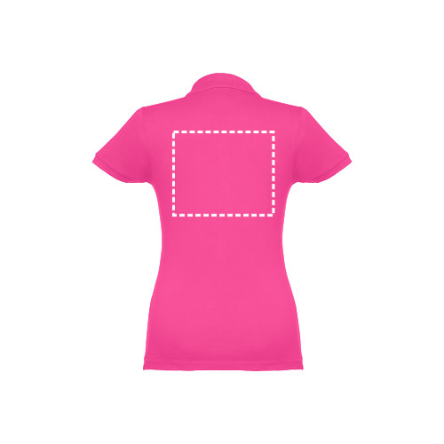 100% kártolt, puha tapintású pamut piqué, rövid ujjú női póló (195 g/m²). (A 183-as szín esetében az anyagösszetétel eltérő: 85% pamut/15% viszkóz.) Piqué szalaggal megerősített, bordázott gallérral és bordázott ujj szegélyekkel. Gombolópánt a nyakon, 4 a póló színével megegyező színű gombbal. (Pótgomb a belső varraton.) Szabott-varrott