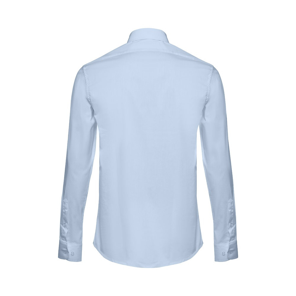 Hosszú ujjú férfi ing 68% pamutból, 28% poliamidból és 4% elasztánból (115 g/m²). Az ujjakon egy hajtással és két gombos, állítható mandzsettákkal. Gombolópánt 7, az ing színéhez illő színes gombbal