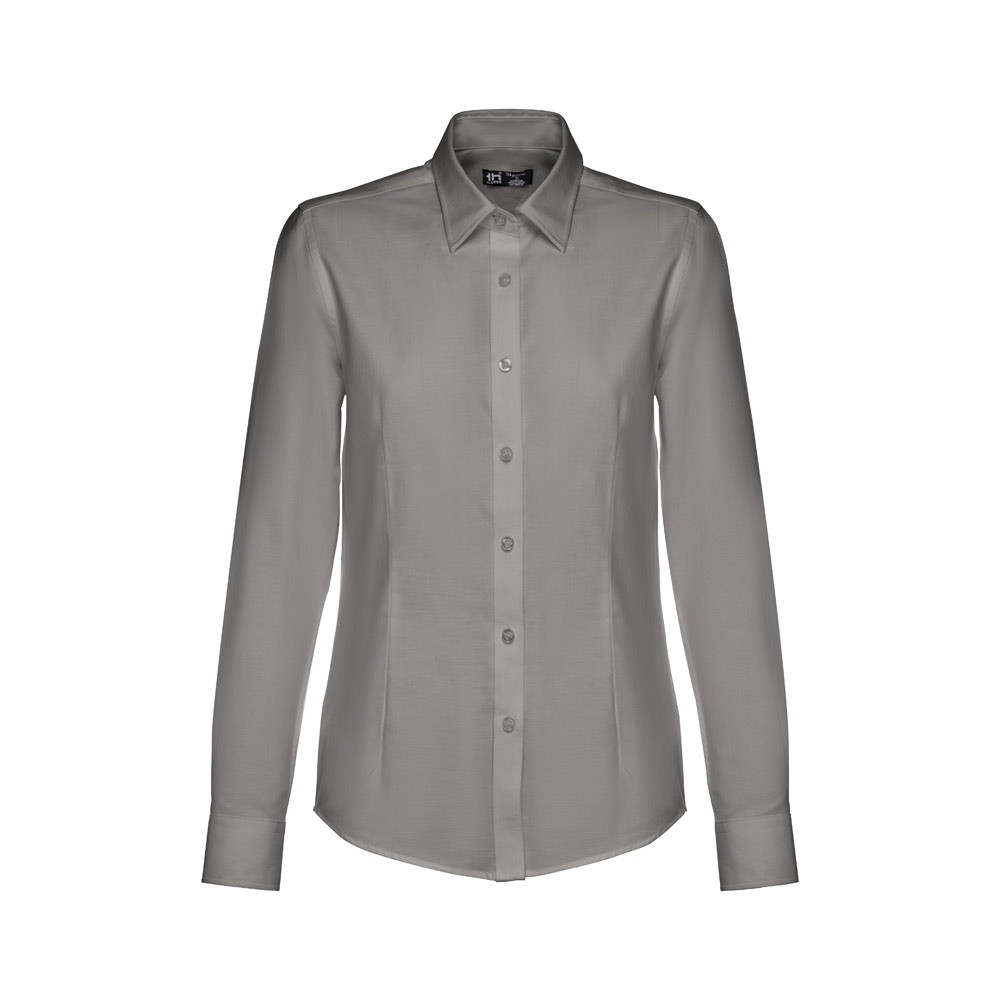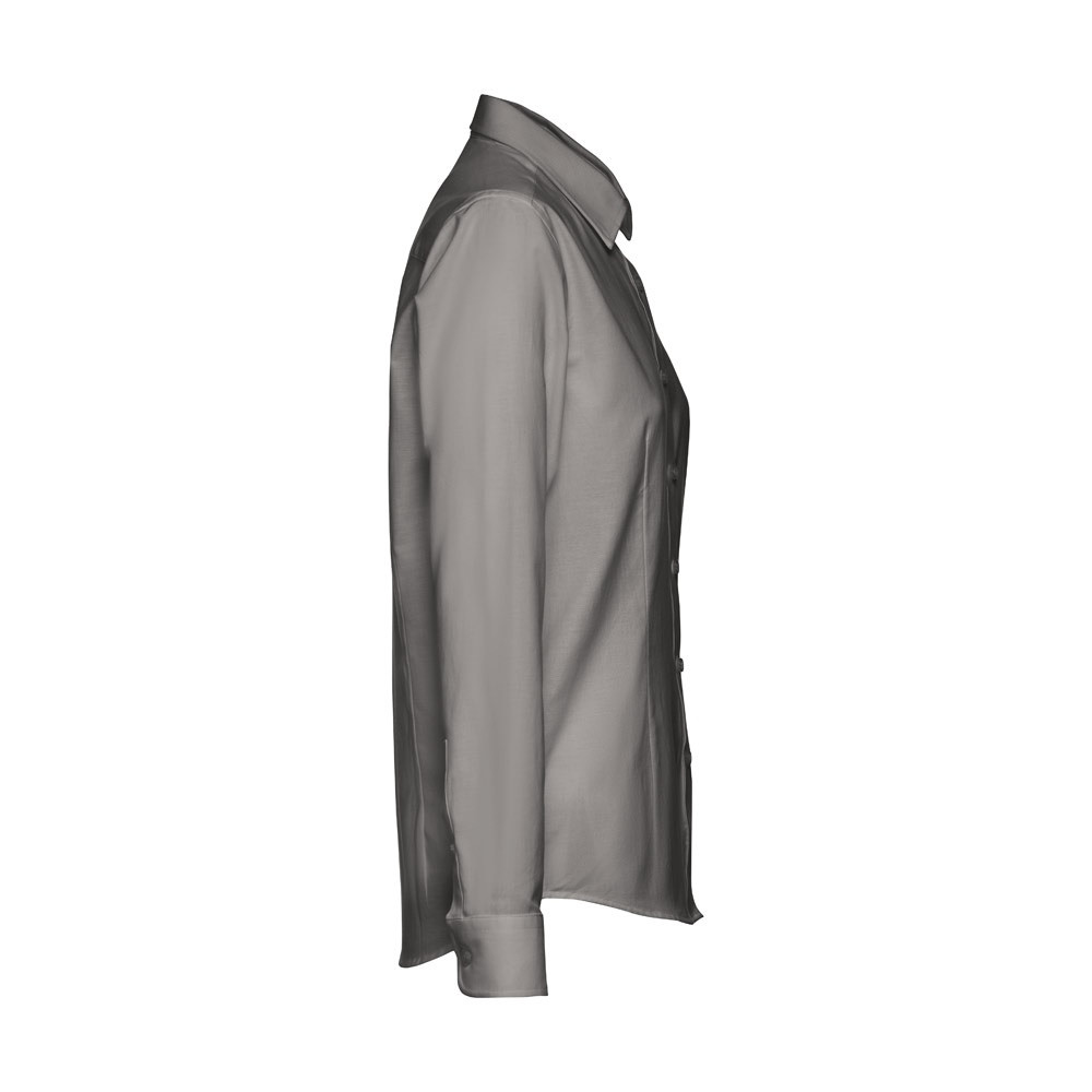 Hosszú ujjú női oxford ing 70% pamutból és 30% poliészterből (130 g/m²). Bal oldalon mellső zsebbel, 2 gombos, állítható mandzsettával és 1 hajtással az ujjakon. Karcsúsított fazon, elől és hátul is 2-2 karcsúsító varással, a gombolópánton 7 gyöngy színű gomb található