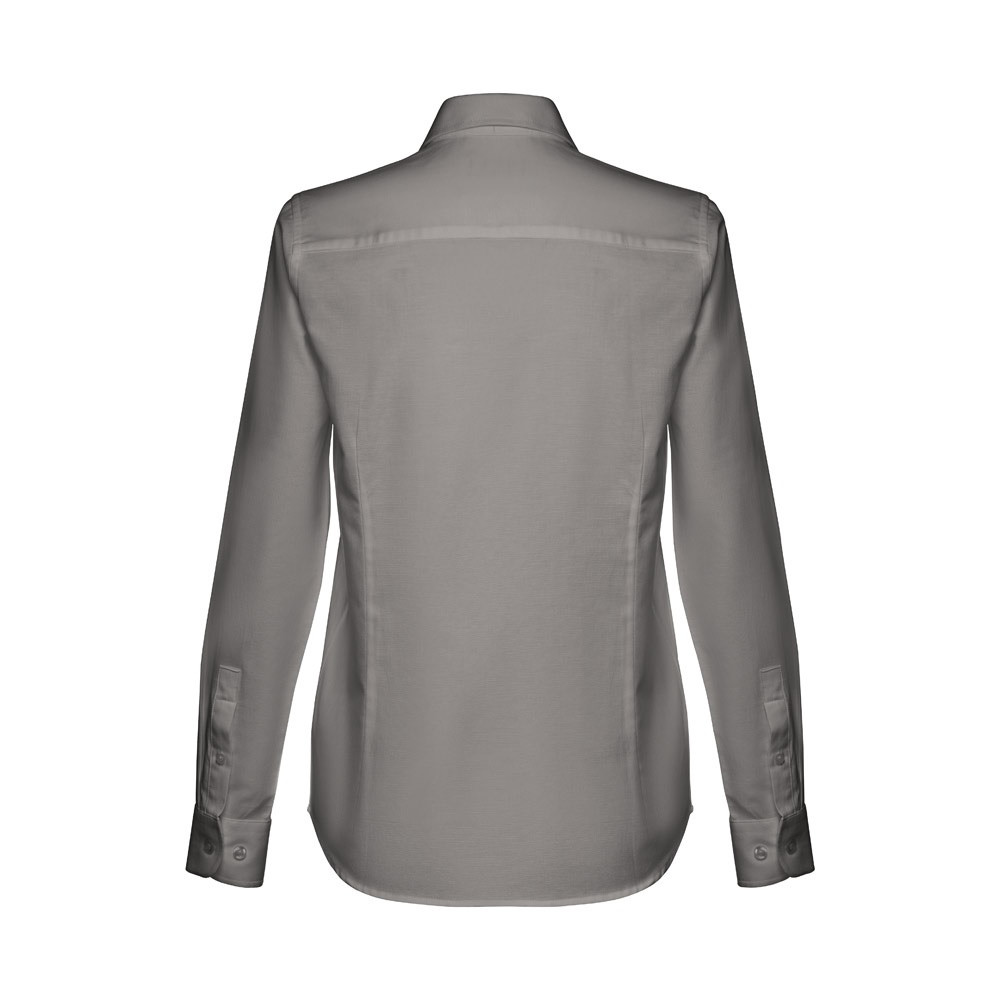 Hosszú ujjú női oxford ing 70% pamutból és 30% poliészterből (130 g/m²). Bal oldalon mellső zsebbel, 2 gombos, állítható mandzsettával és 1 hajtással az ujjakon. Karcsúsított fazon, elől és hátul is 2-2 karcsúsító varással, a gombolópánton 7 gyöngy színű gomb található