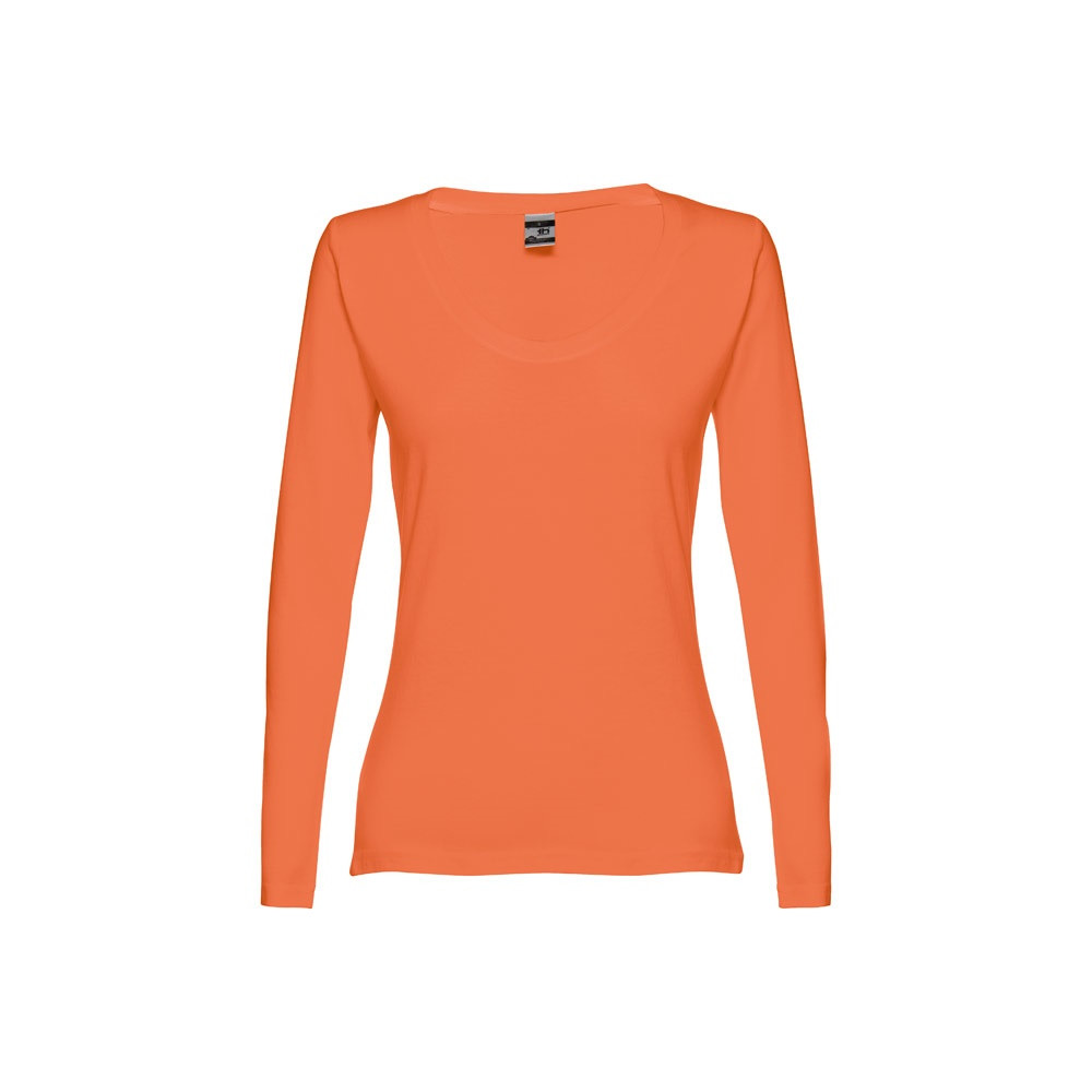 Hosszú ujjú, 100% pamut jersey női póló (150 g/m²) kártolt, puha tapintású fonalból szőve. (Az anyagösszetétel a 194, 195-es színeknél eltérő lehet: 60% pamut/40% poliészter, 183: 90% pamut/10% viszkóz). 1*1 bordás jersey nyak, jersey szalaggal megerősítve. Normál szabású, cső fazonú póló, dupla öltéssel az ujjakon és az alján. Méretek: S, M, L, XL, XXL