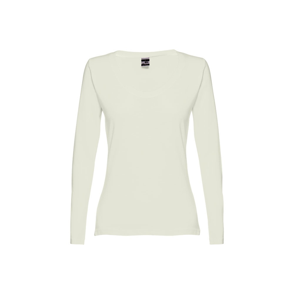 Hosszú ujjú, 100% pamut jersey női póló (150 g/m²) kártolt, puha tapintású fonalból szőve. (Az anyagösszetétel a 194, 195-es színeknél eltérő lehet: 60% pamut/40% poliészter, 183: 90% pamut/10% viszkóz). 1*1 bordás jersey nyak, jersey szalaggal megerősítve. Normál szabású, cső fazonú póló, dupla öltéssel az ujjakon és az alján. Méretek: S, M, L, XL, XXL