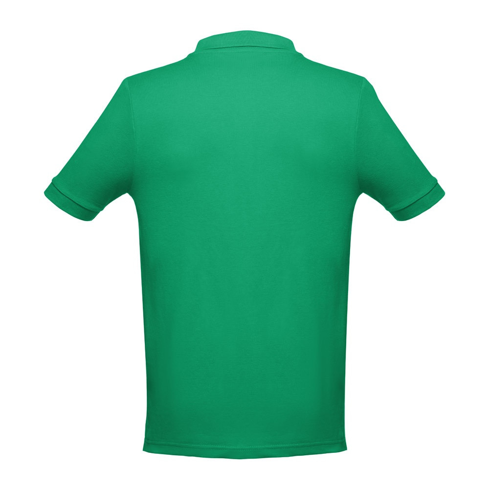 100% kártolt, puha tapintású pamut piqué hálós férfi póló (195 g/m²). (A 183-as szín esetében az anyagösszetétel eltérő: 85% pamut/15% viszkóz.) Normál szabású, rövid ujjú póló, bordázott ujj szegélyekkel és gallérral. Piqué szallaggal megerősített gallér. Gombolópánt elől a nyakrésznél, három, a poló anyagával megeggyező színű gombbal (extra gombbal a belső varraton). Szabott-varrott, oldalt sliccel az alján. Méretek: S, M, L, XL, XXL