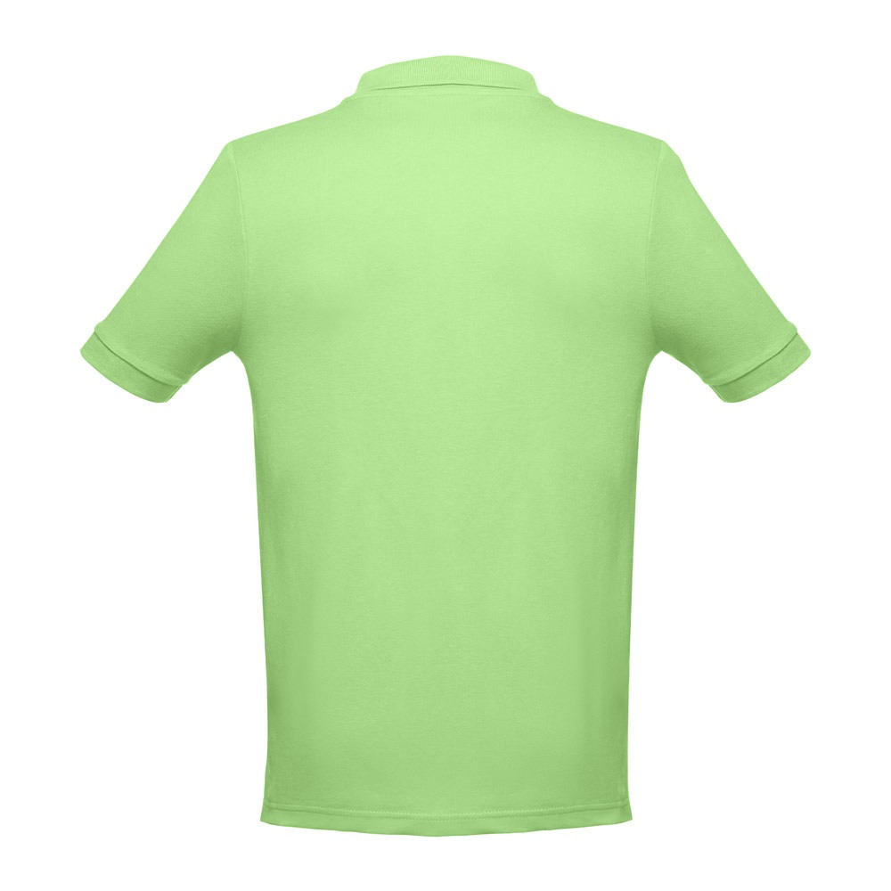 100% kártolt, puha tapintású pamut piqué hálós férfi póló (195 g/m²). (A 183-as szín esetében az anyagösszetétel eltérő: 85% pamut/15% viszkóz.) Normál szabású, rövid ujjú póló, bordázott ujj szegélyekkel és gallérral. Piqué szallaggal megerősített gallér. Gombolópánt elől a nyakrésznél, három, a poló anyagával megeggyező színű gombbal (extra gombbal a belső varraton). Szabott-varrott, oldalt sliccel az alján. Méretek: S, M, L, XL, XXL