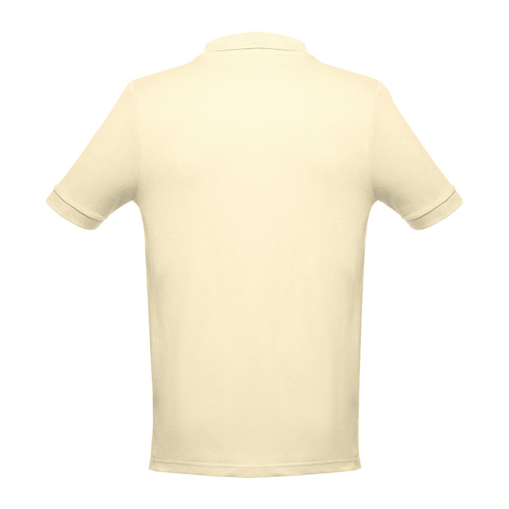 100% kártolt, puha tapintású pamut piqué hálós férfi póló (195 g/m²). (A 183-as szín esetében az anyagösszetétel eltérő: 85% pamut/15% viszkóz.) Normál szabású, rövid ujjú póló, bordázott ujj szegélyekkel és gallérral. Piqué szallaggal megerősített gallér. Gombolópánt elől a nyakrésznél, három, a poló anyagával megeggyező színű gombbal (extra gombbal a belső varraton). Szabott-varrott, oldalt sliccel az alján. Méretek: S, M, L, XL, XXL
