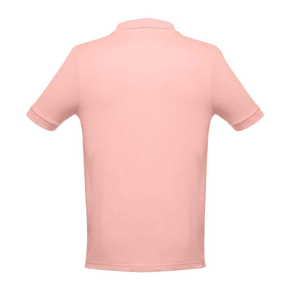 100% kártolt, puha tapintású pamut piqué hálós férfi póló (195 g/m²). (A 183-as szín esetében az anyagösszetétel eltérő: 85% pamut/15% viszkóz.) Normál szabású, rövid ujjú póló, bordázott ujj szegélyekkel és gallérral. Piqué szallaggal megerősített gallér. Gombolópánt elől a nyakrésznél, három, a poló anyagával megeggyező színű gombbal (extra gombbal a belső varraton). Szabott-varrott, oldalt sliccel az alján. Méretek: S, M, L, XL, XXL