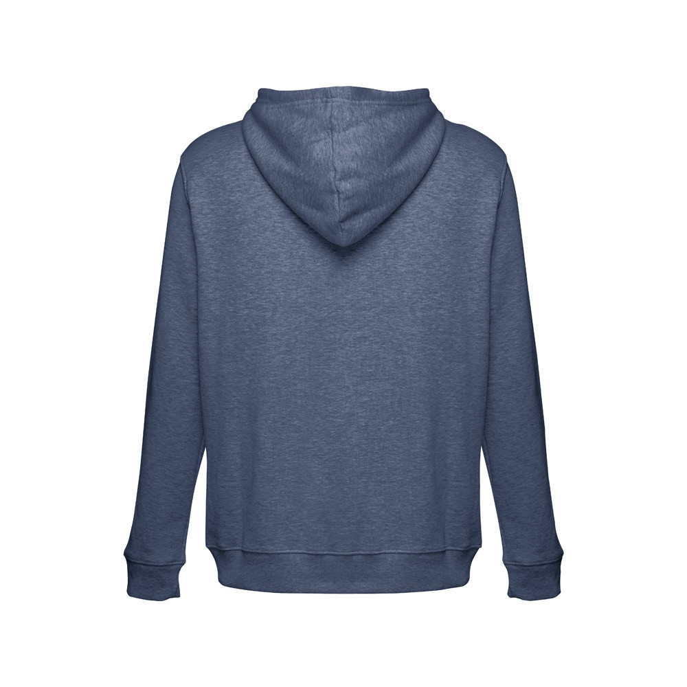 Férfi cipzáras, kapucnis pulóver 50% pamutból és 50% poliészterből (320g/m²). Húzózsinóros, bélelt kapucni. Kártolt, puha tapintású belsőrész. Elől két erszényes zseb és műanyag, rejtett cipzár. Az ujjak madzsettákkal az alján pedig övpánttal