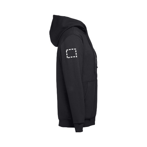 Férfi cipzáras, kapucnis pulóver 50% pamutból és 50% poliészterből (320g/m²). Húzózsinóros, bélelt kapucni. Kártolt, puha tapintású belsőrész. Elől két erszényes zseb és műanyag, rejtett cipzár. Az ujjak madzsettákkal az alján pedig övpánttal. Méretek: S, M, L, XL, XXL