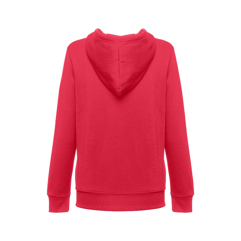 Női cipzáras, kapucnis pulóver 50% pamutból és 50% poliészterből (320g/m²). Húzózsinóros, bélelt kapucni. Kártolt, puha tapintású belsőrész. Elől két erszényes zseb és műanyag, rejtett cipzár. Az ujjak madzsettákkal az alján pedig övpánttal. Méretek: S, M, L, XL, XXL