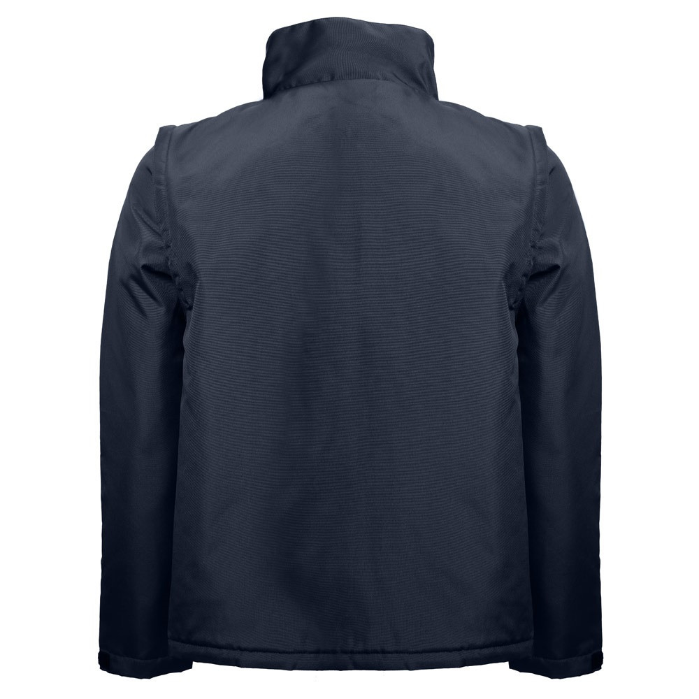 Uniszex párnázott kabát (külső: 170 g/m² 100% Oxford poliészter szövet akril bevonattal, töltet: 75 g/m² 100% poliészter, belső: 65 g/m² 100% poliészter taft). Mellénnyé alakítható, levehető cipzáras ujjakkal. Polárbevonatú gallért és három cipzáras zsebet tartalmaz. Hátsó cipzárral a könnyű testreszabás érdekében