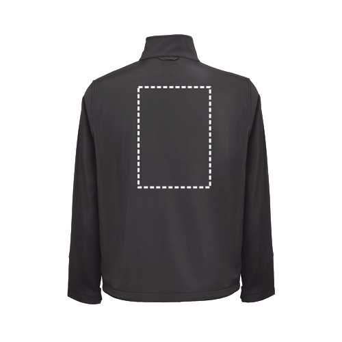 96% poliészter és 4% elasztán (280 g/m²) softshell unisex kabát két rétegű, vízálló bevonattal. Polár bélésű kabát, két cipzáras, gumírozott cipzárhúzós, átlós elülső zsebbel. Tépőzáras pánttal állítható mandzsettával és a derekán húzózsinóral