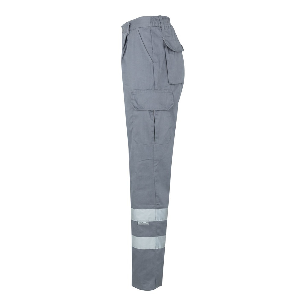 Többzsebes szövetnadrág (200g/m²), pamutból (35%) és poliészterből (65%). Elasztikus derékpánttal, fényvisszaverő csíkokkal a nadrág alján és hat zsebbel (2 francia zseb, 2 oldalzseb és 2 hátsó zseb). A termék megfelel az EU 2016/425 rendeletnek, EN17353 tanúsítvánnyal és B2 osztályozással rendelkezik. Méret: S, M, L, XL, 2XL, 3XL