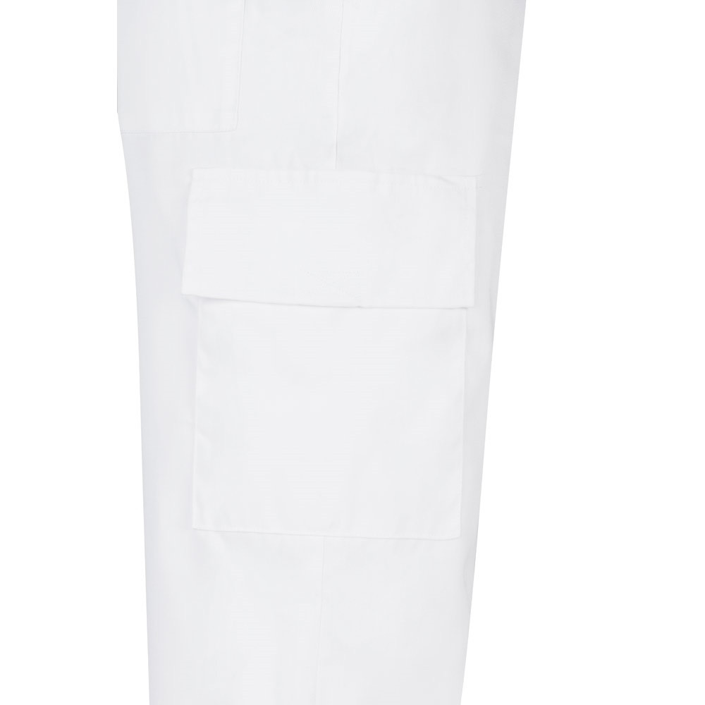 Többzsebes szövetnadrág (190g/m²), pamutból (20%) és poliészterből (80%). Elasztikus derékpánttal és öt zsebbel (2 francia zseb, 2 oldalsó zseb és 2 hátsó zseb). Méret: 36, 38, 40, 42, 44, 46, 48, 50, 52, 54, 56, 58, 60