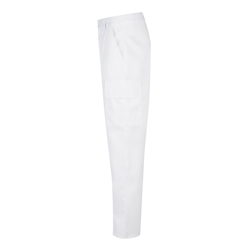 Többzsebes szövetnadrág (190g/m²), pamutból (20%) és poliészterből (80%). Elasztikus derékpánttal és öt zsebbel (2 francia zseb, 2 oldalsó zseb és 2 hátsó zseb). Méret: 36, 38, 40, 42, 44, 46, 48, 50, 52, 54, 56, 58, 60