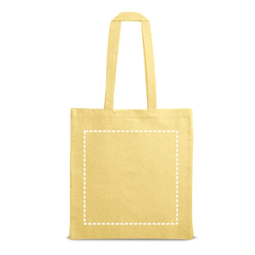 Szatyor újrahasznosított pamuttal (70%), poliészterből (30% rPET) (140 g/m²) 68 cm-es fogantyúval. Az újrahasznosított pamut nem festett. A nyersanyagot eredeti formájában és színében használják fel, festő- vagy fehérítő vegyszerek használata nélkül, ami hozzájárul a kisebb környezeti hatáshoz. 380 x 410 x 100 mm