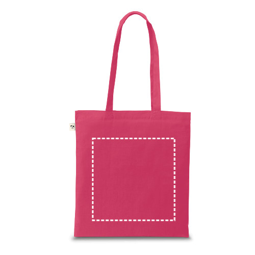 Táska újrahasznosított pamutból (70%) és poliészterből (30% rPET) (150 g/m²), 65 cm-es fogantyúval. Az újrahasznosított pamut egyszínű és festetlen. A nyersanyagot eredeti formájában és színében használják fel, festő- vagy fehérítő vegyszerek használata nélkül, ami hozzájárul a kisebb környezeti hatáshoz. Az egyszínűséget az azonos árnyalatú újrahasznosított fonal kiválasztásával érik el, ezért tökéletlenségek és színváltozatok előfordulhatnak. 380 x 420 mm